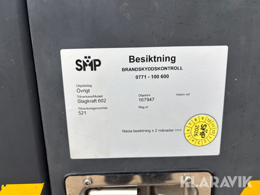 Boka frakt? Det finns ingen specifik information om frakt för just det här objektet, men om du skickar oss en förfrågan via vårt fraktformulär, så undersöker vi möjligheten. Paket, EU-pall eller större maskin? Klaravik har fraktavtal med Schenker och i de fall vi kan hjälpa till med frakt gäller det objekt som ryms i paket eller inom en EU-pall (upp till 120*80 cm och 990 kg). Det går att beställa frakt inom Sverige, dock inte till utlandet. Vid frakt på större maskiner rekommenderar vi gärna transportföretag som du kan kontakta.