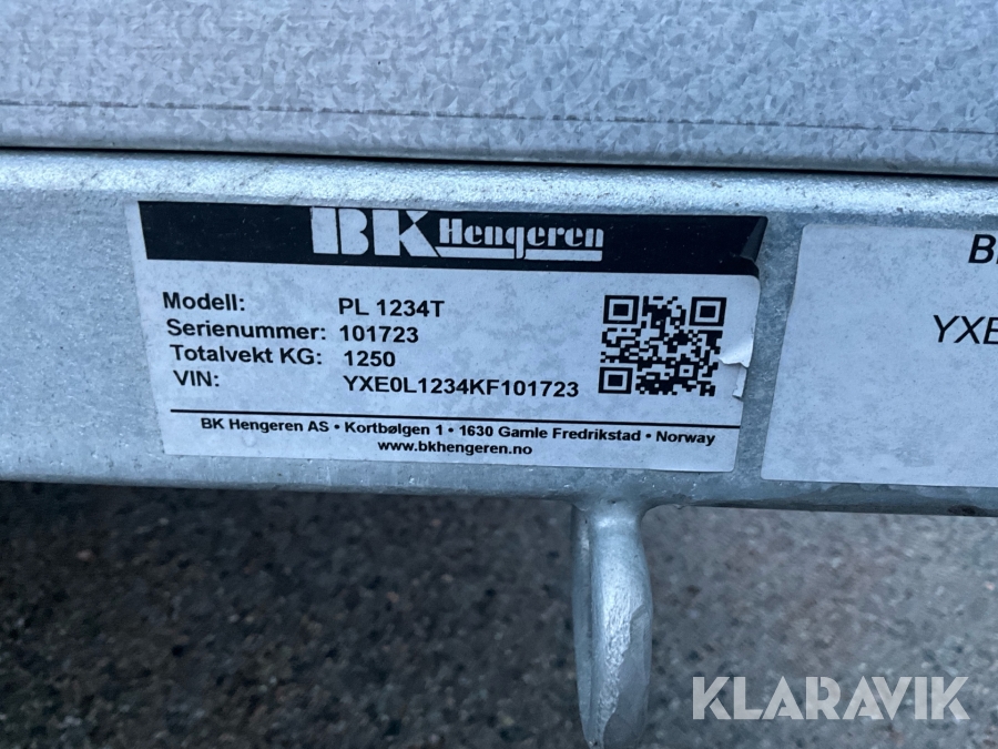 Personbilssläp BK Hengeren PL 1234T med tipp